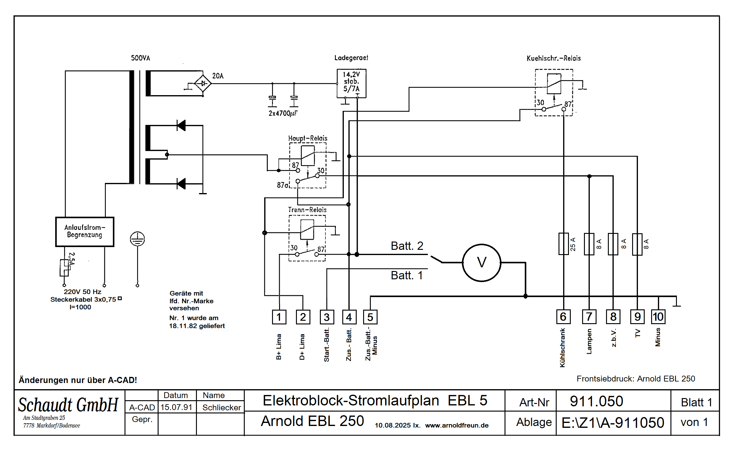 Das Originalschaltbild Schaudt EBL 5 / Arnold EBL 250: