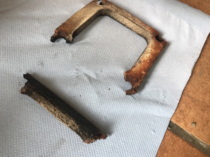 Mit den Stehbolzen zwischen Ansaugbrücke und Abgaskrümmer sah es auch nicht mehr rosig aus. Zwei Stehbolzen (die in den Gußkrümmer geschraubt waren) hingen praktisch nur noch an Fragmenten von Resteisen.