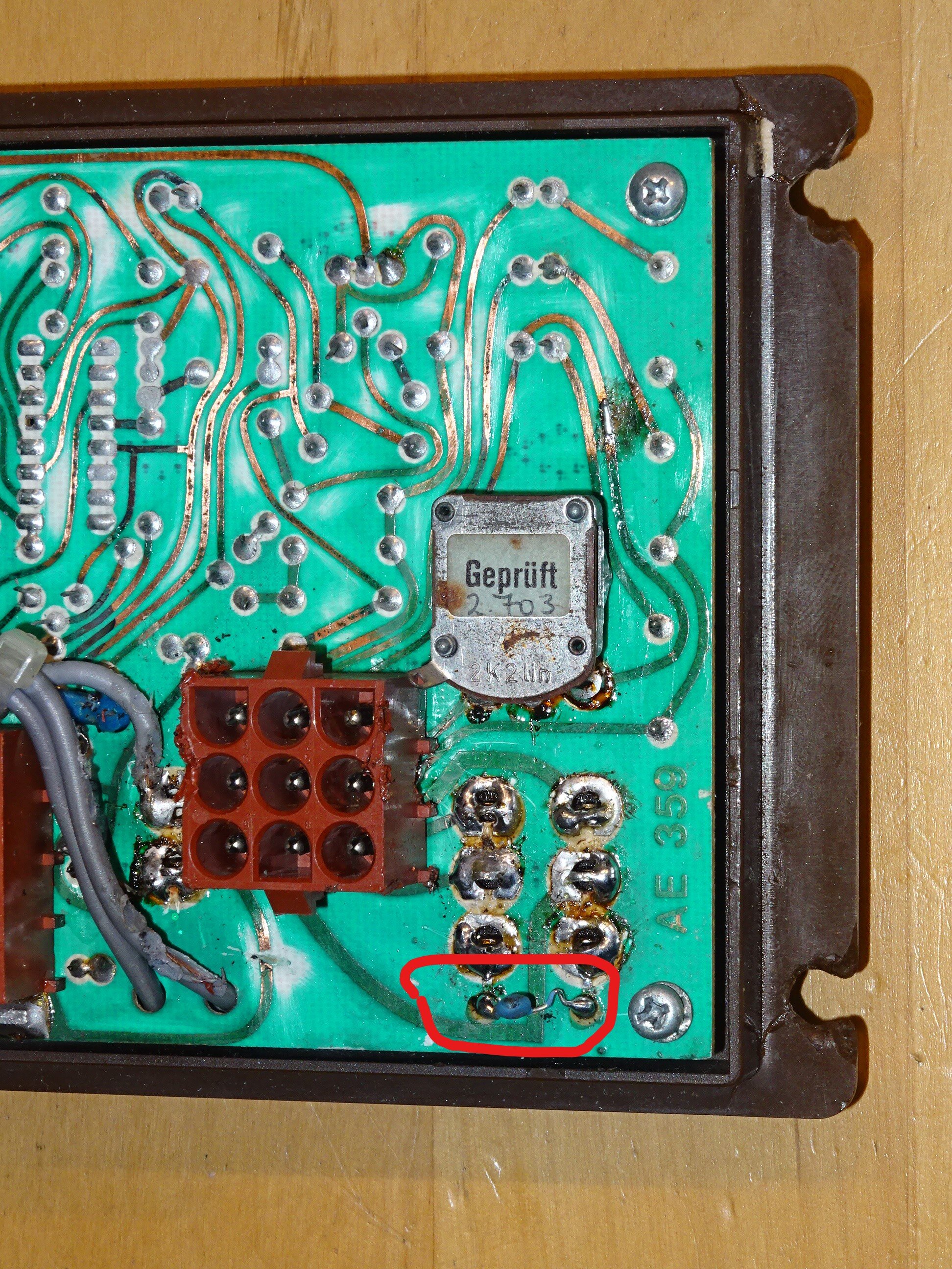 UND nun ein Gefahrenhinweis: Der Widerstand kann nur überhitzen, wenn der Boiler ausgeschaltet ist. Die auf der Platine vorhandene Sicherung kann zudem nicht ansprechen, weil für diesen Fall nicht ausgelegt